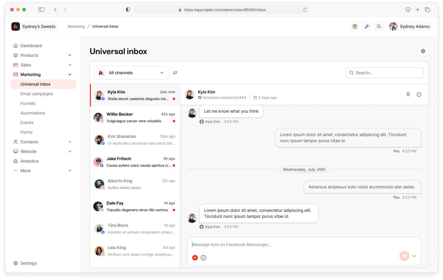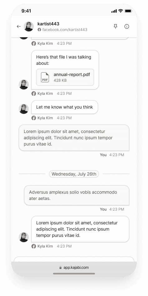 A unified communication hub that brings Instagram and Facebook DMs directly into Kajabiโgiving creators one place to manage conversations, nurture leads, and act in real time.
