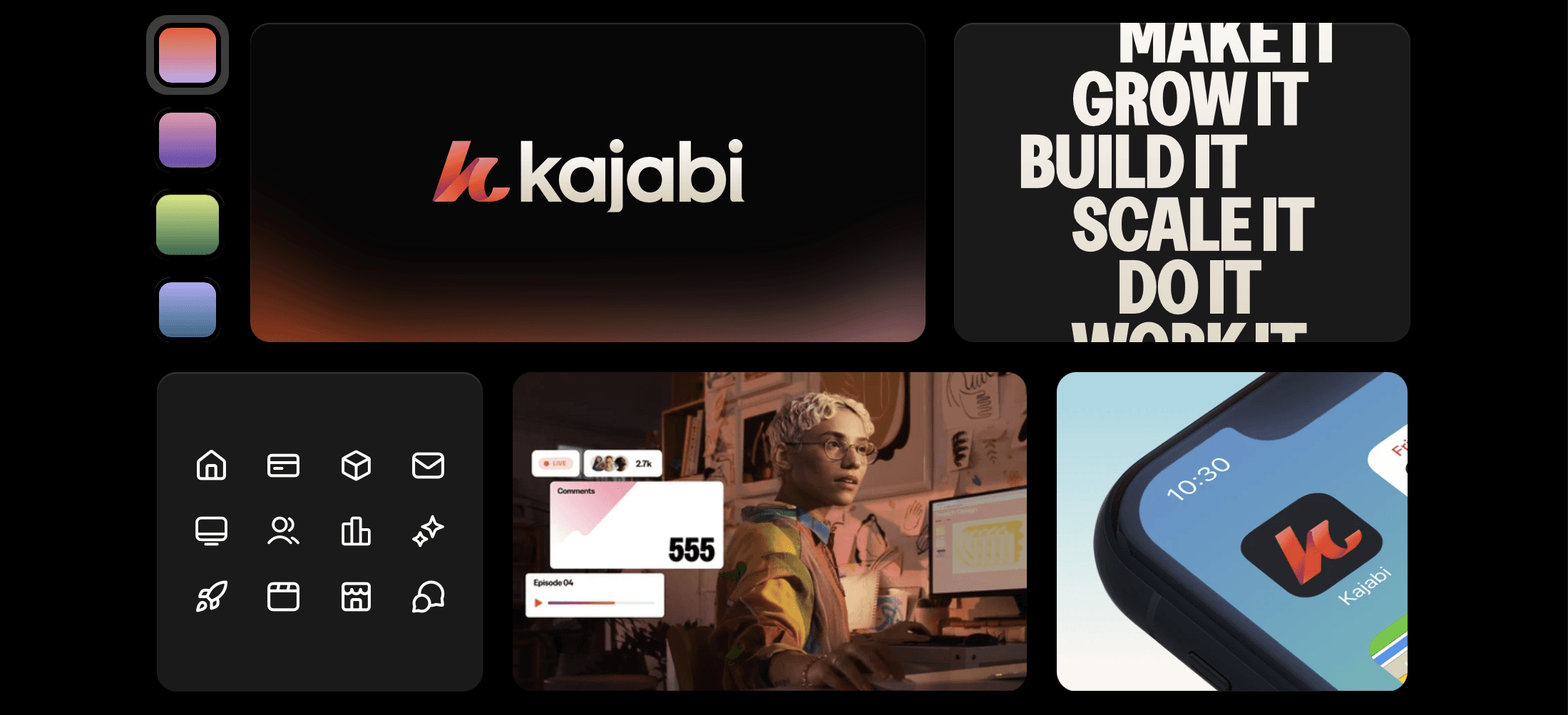 A complete rebrand of Kajabiโmodernizing the visual identity, systemizing the design language, and aligning the brand with the evolving needs and ambitions of todayโs creators.